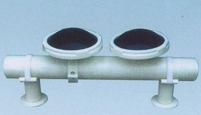 球冠形微孔曝氣器主要由曝氣膜片、支承托盤、螺旋壓蓋、螺紋接咀等部件組成,只要將橡膠膜片套在支承托盤上,用螺旋壓蓋擰緊即可。在安裝時,再把支承托盤(中心有G3/4”內(nèi)螺紋通氣道)裝于布?xì)夤艿理敳康穆菁y接咀上。