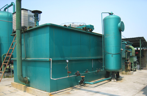 氣浮法的原理是在全部原水由泵加壓至0.3~0.5Mpa,壓入溶氣罐,用空壓機(jī)向溶氣罐壓入空氣,將大量空氣溶入水中,并通過釋放器驟然減壓、快速釋放,在水中產(chǎn)生大量微細(xì)氣泡,和反應(yīng)后的凝聚物粘附在一起,從而浮于液面之上,使污染物得以從廢水中分離出來,達(dá)到凈水目的。
